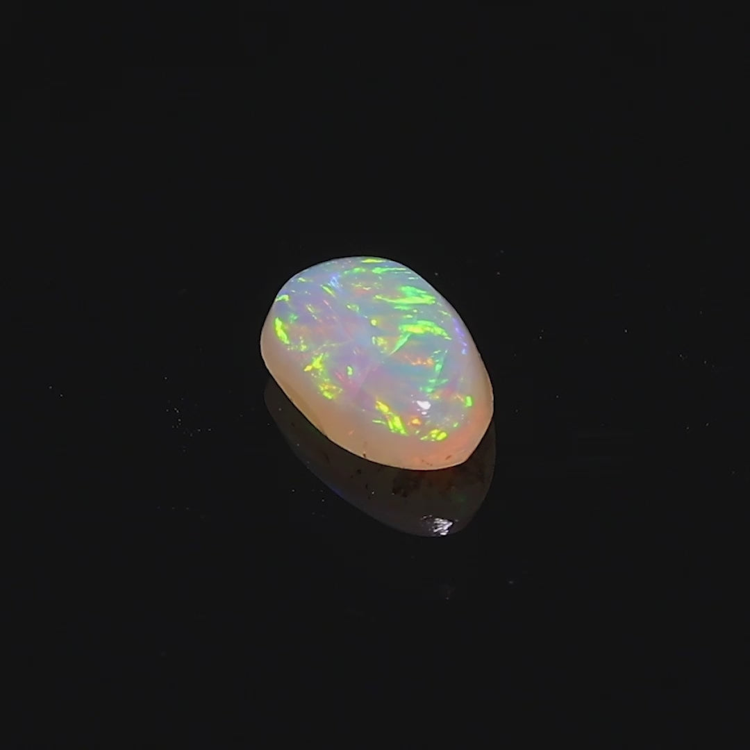 Discover the allure of this 0.49-carat black opal from Lightning Ridge, Australia, showcasing a vibrant interplay of green, blue, and orange hues. The opal's dynamic color flashes radiate across its surface, creating a mesmerizing visual experience. Its polished, freeform shape enhances its unique charm, making it a versatile choice for bespoke jewelry or a prized addition to any gemstone collection. Renowned for their rarity and beauty, black opals from Lightning Ridge are a symbol of natural luxury and sophistication.