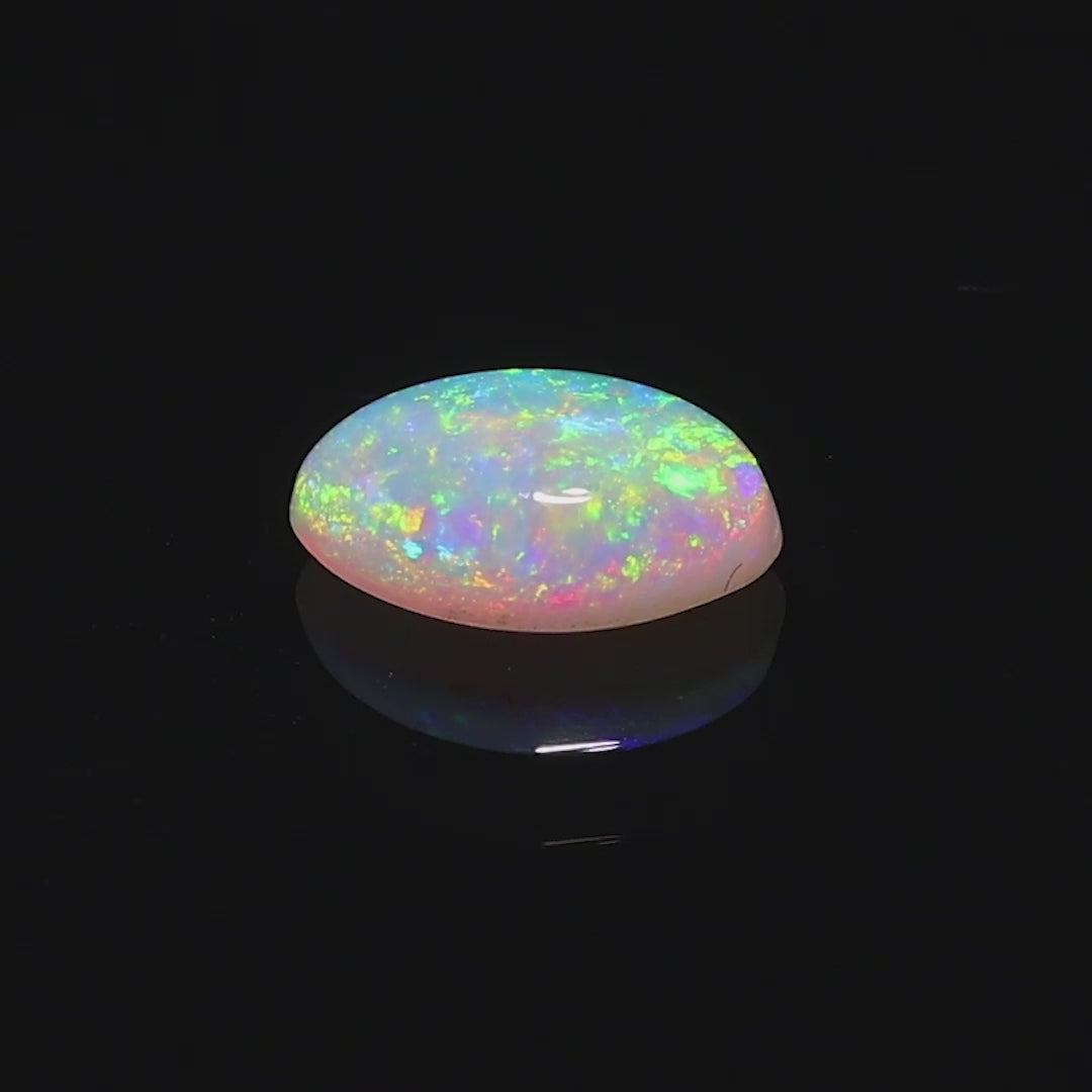 This dazzling 0.7-carat black opal from Lightning Ridge, Australia, showcases a magnificent array of colors, including vibrant red, orange, green, blue, and yellow. The stone's exceptional brilliance and natural color play make it a rare and valuable gem. Its domed cut enhances its reflective qualities, creating a mesmerizing visual effect under various lighting conditions. Perfect for a high-end jewelry piece or as a collector's gem, this opal epitomizes the beauty and mystique of Lightning Ridge black opals, treasured worldwide for their vivid and intricate color displays.