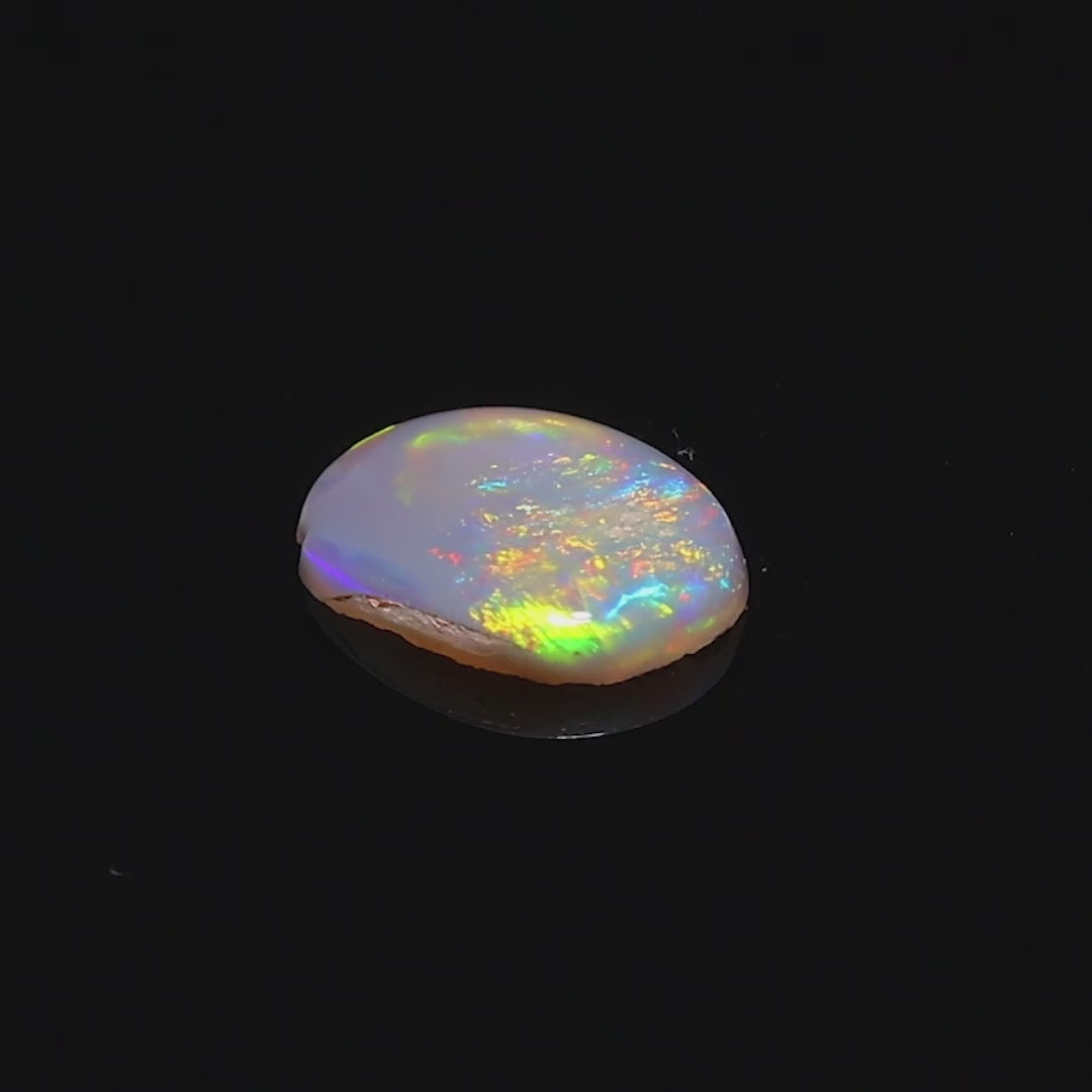 This 0.44-carat black opal from Lightning Ridge, Australia, radiates a vibrant play of colors, featuring rich hues of red, orange, and green. Its polished surface and natural brilliance highlight the gem's fiery color play, making it an exquisite choice for a centerpiece in fine jewelry. The unique shape and subtle tonal variations add character to this rare opal, reflecting the natural wonders of Lightning Ridge. Whether for a bespoke jewelry creation or a prized addition to a gem collection, this opal exudes elegance and rarity.