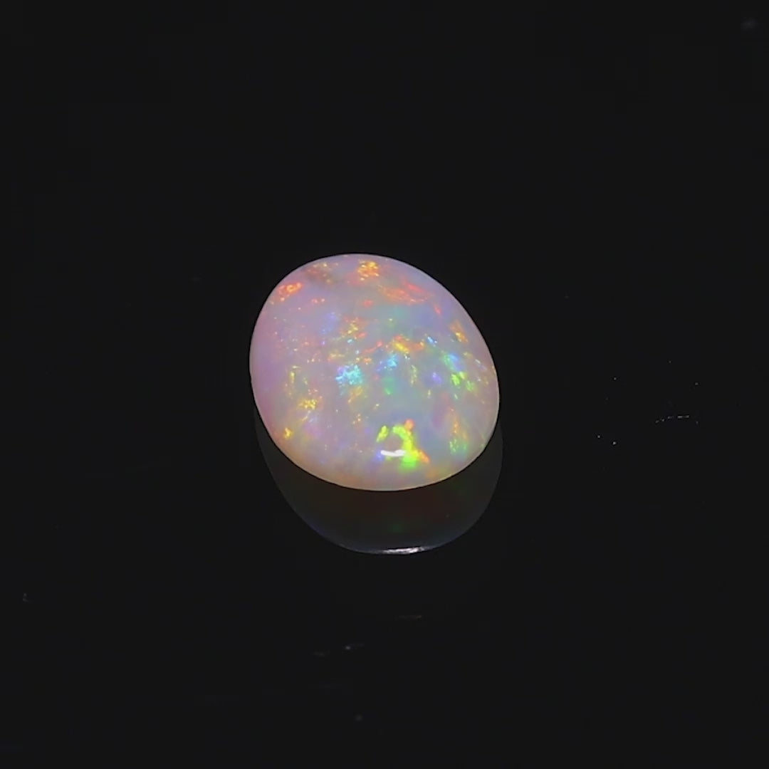 This exquisite 0.48-carat black opal from Lightning Ridge, Australia, is a true marvel of nature. Displaying a vivid play-of-color in radiant red, orange, and green hues, this gemstone is a vibrant masterpiece. Its polished dome accentuates its brilliance, offering a luxurious and timeless aesthetic. Perfect for bespoke jewelry designs or as a cherished addition to any gemstone collection, this opal encapsulates the beauty and allure of Australia’s finest treasures. A captivating choice for those who appreciate rare and striking gems.