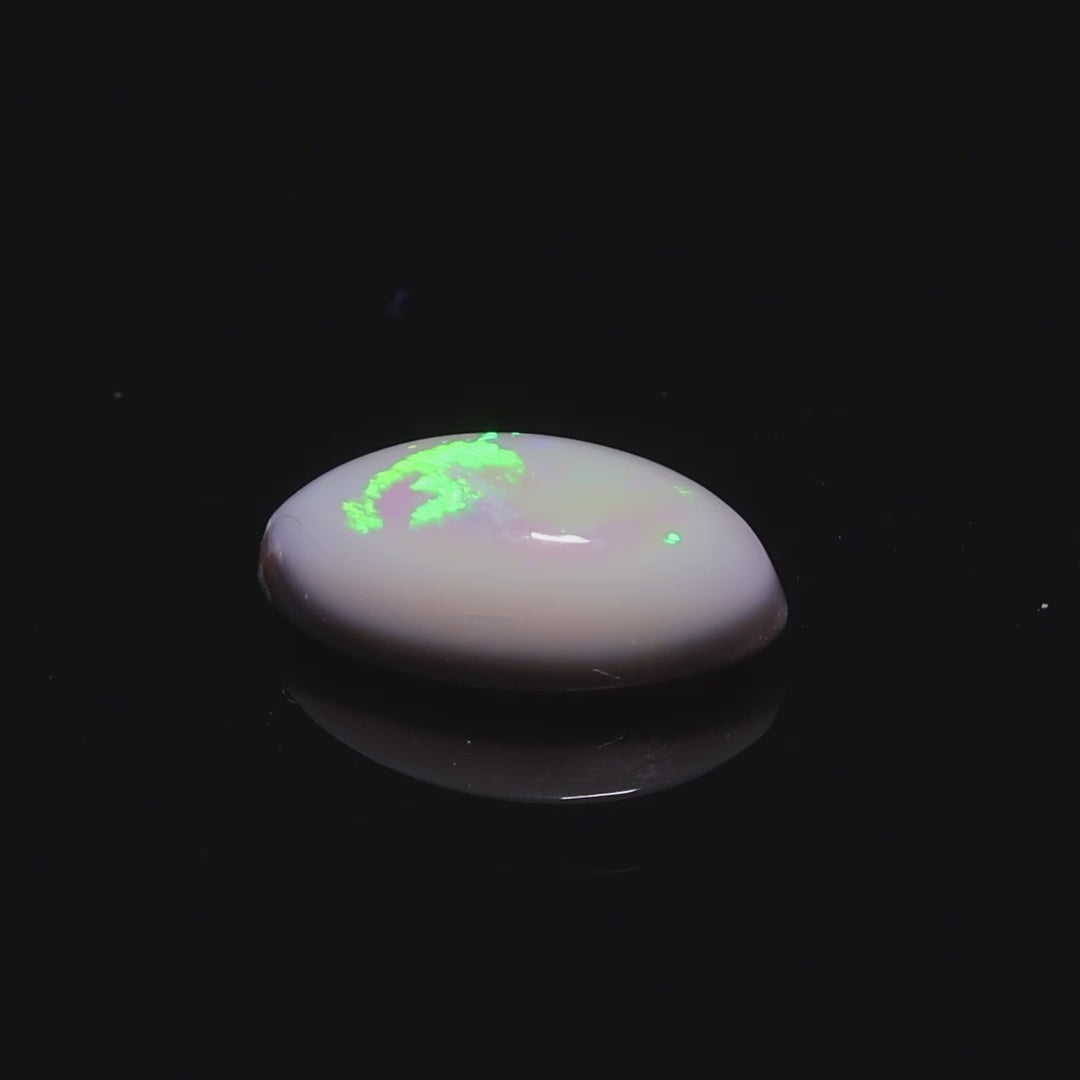 This striking 1.26-carat opal from Lightning Ridge, Australia, captivates with its radiant green hues that shimmer against its smooth surface. Known for its high-quality black opals, Lightning Ridge produces opals with unparalleled color play and depth. The gentle oval cut enhances its vibrant glow, showcasing its unique characteristics. This opal is a timeless treasure, ideal for fine jewelry or collectors seeking a piece of natural artistry. Its bold green flashes make it a standout gem, embodying the mesmerizing beauty of Australian opals.