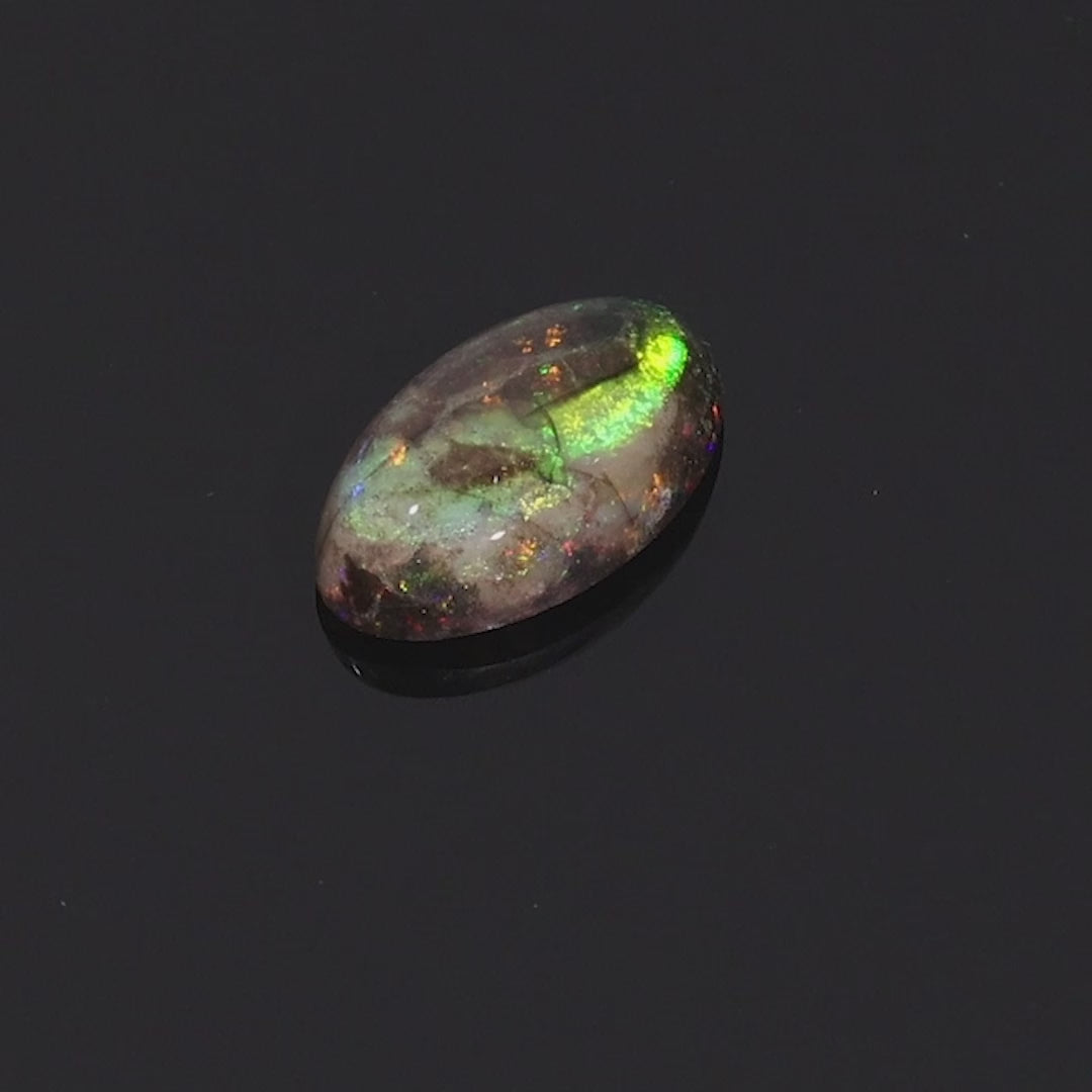 This stunning 1.85-carat opal from the world-renowned Lightning Ridge region in Australia showcases a breathtaking display of green, red, blue, and orange hues. Its vibrant colors dance across the stoneโs surface, highlighted by a super rare formation that adds to its uniqueness and allure. The opalโs natural brilliance and intricate color play make it a prized choice for collectors and bespoke jewelry designs. With its rare formation and striking vibrancy, this opal captures the essence of Australian gemstone beauty, promising to be a true showstopper in any collection.
