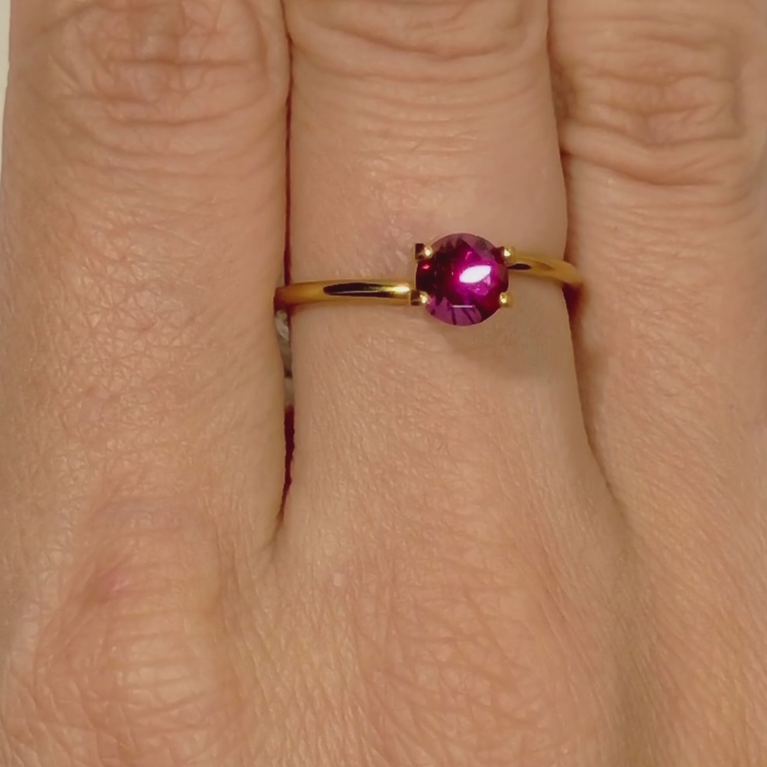 This vivid 0.91 carat round rhodolite displays a striking mix of deep raspberry and plum hues. Its symmetrical silhouette and intense internal fire make it an exceptional choice for a modern solitaire or halo design. The lively brilliance brings warmth and elegance to any setting.