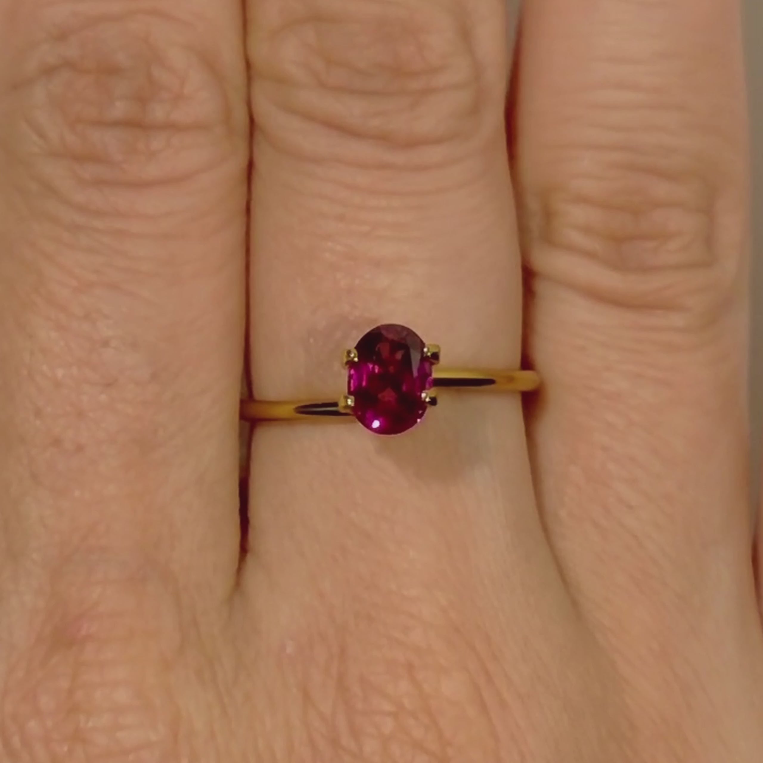 A bold and captivating deep raspberry-pink hue radiates from this 1.14-carat oval-cut gem. Its rich, saturated color delivers a sense of timeless elegance, with a gentle play of light across its symmetrical facets. This gemstone brings warmth and sophistication โ ideal for a statement ring or pendant with personality.