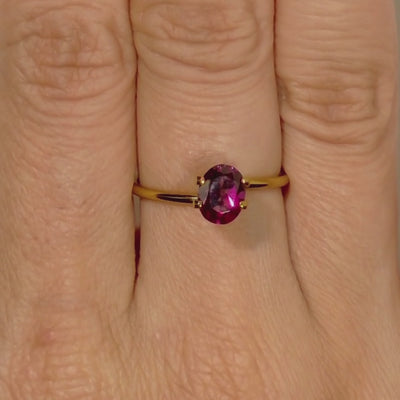 This striking 1.28 carat rhodolite offers a bold presence in a classically elegant oval shape. Its rich, saturated berry-pink hue reveals a kaleidoscope of warm purples and crimson flashes under the light, giving the gem an almost velvet-like depth. The balanced proportions of this oval cut enhance its visual size while maintaining graceful symmetry, making it a perfect choice for rings, pendants, or bespoke heirloom pieces.