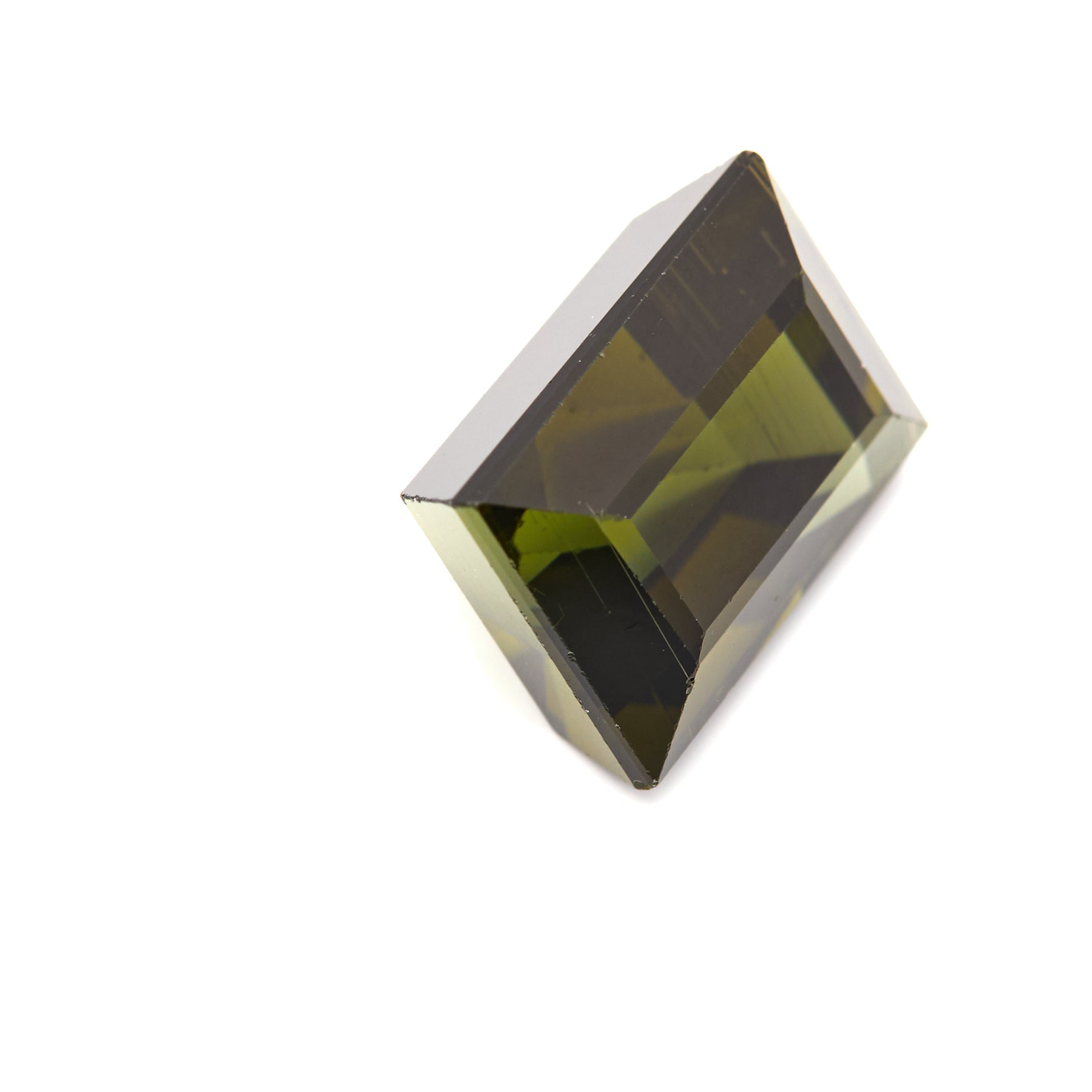 A captivating deep green hue and commanding size set this 6.76 ct. Tourmaline apart. Expertly cut in a precise step-cut rectangle, its clean geometry emphasizes clarity and structure, while its almost forest-like tone gives it a grounding, earthy allure. This gemstone radiates understated power and elegance, making it a standout centrepiece for a bold design. Whether set in a bespoke ring or pendant, this richly saturated beauty will anchor your collection with quiet sophistication.