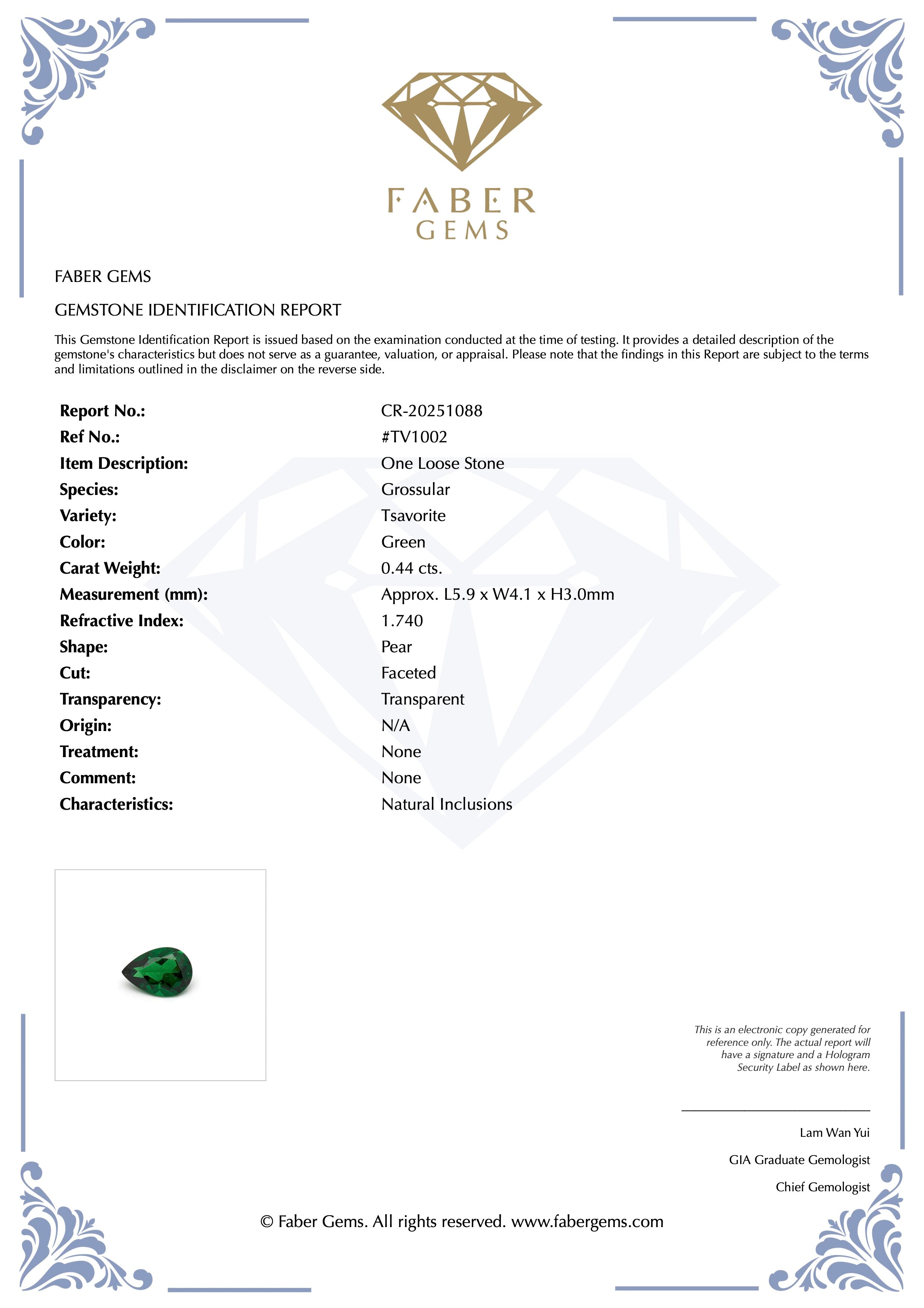 0.44 ct. Rare Tanzanian Tsavorite #TV1002