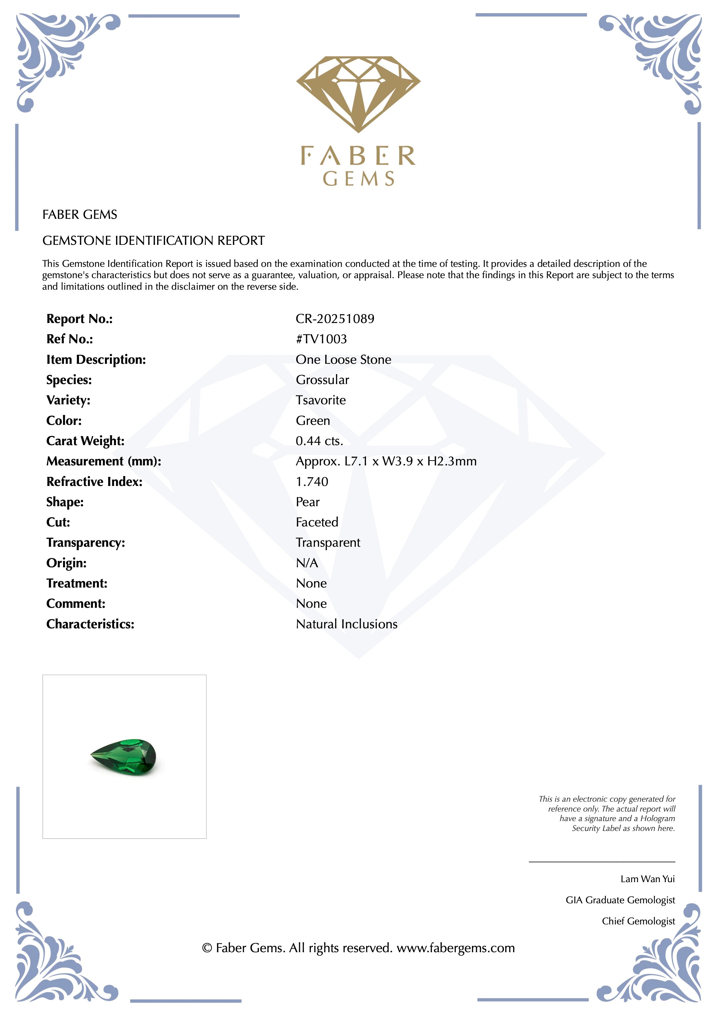 0.44 ct. Rare Tanzanian Tsavorite #TV1003