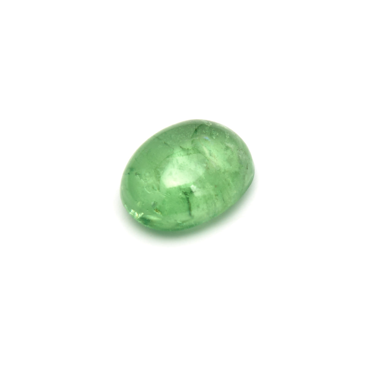 A soothing cabochon with a serene forest-green hue, this 0.88 carat Tanzanian tsavorite offers a smooth, luminous surface and a gentle domed shape that invites touch. Its natural inclusions and soft glow give it character and authenticity, making it a soulful choice for bespoke jewellery or a collector’s tray.