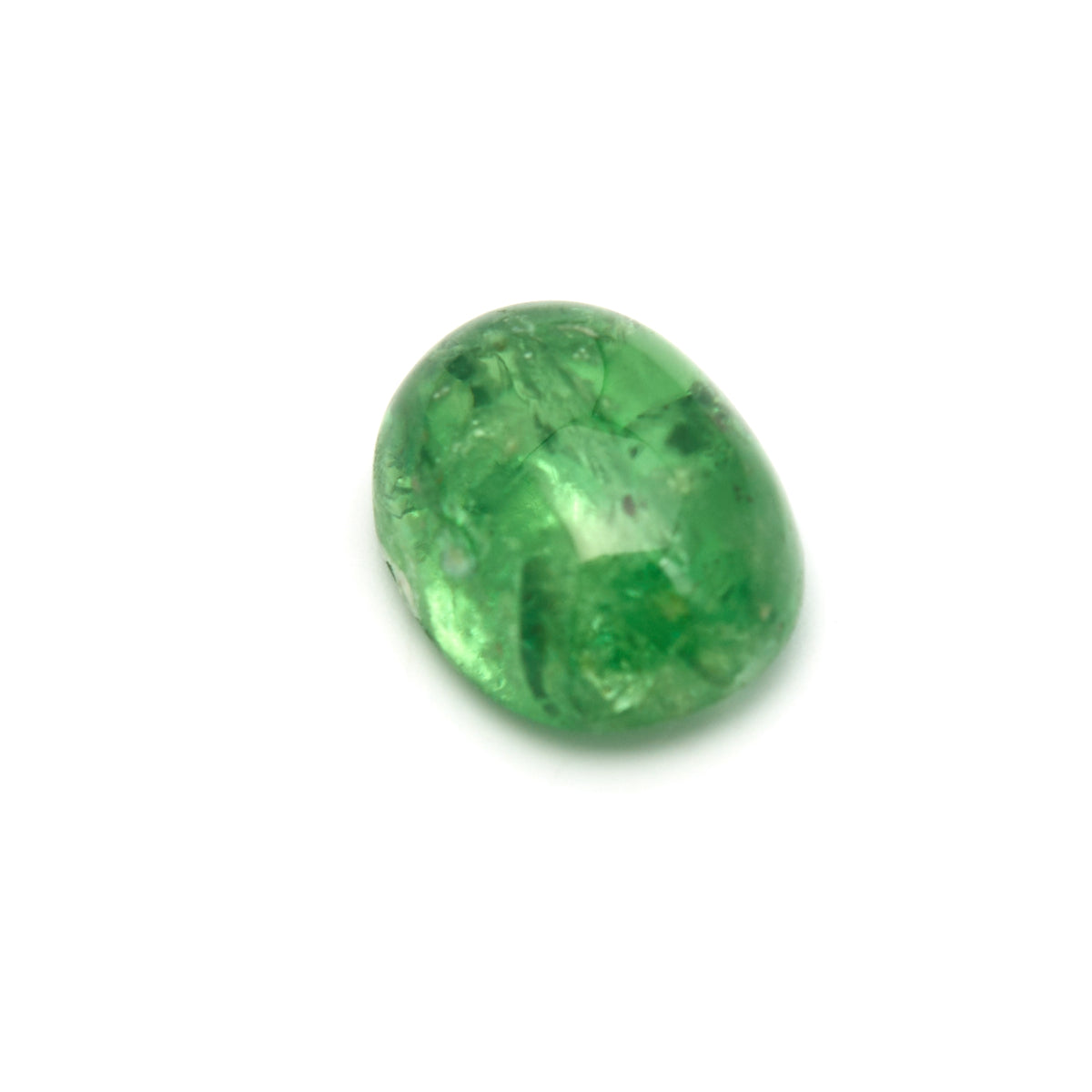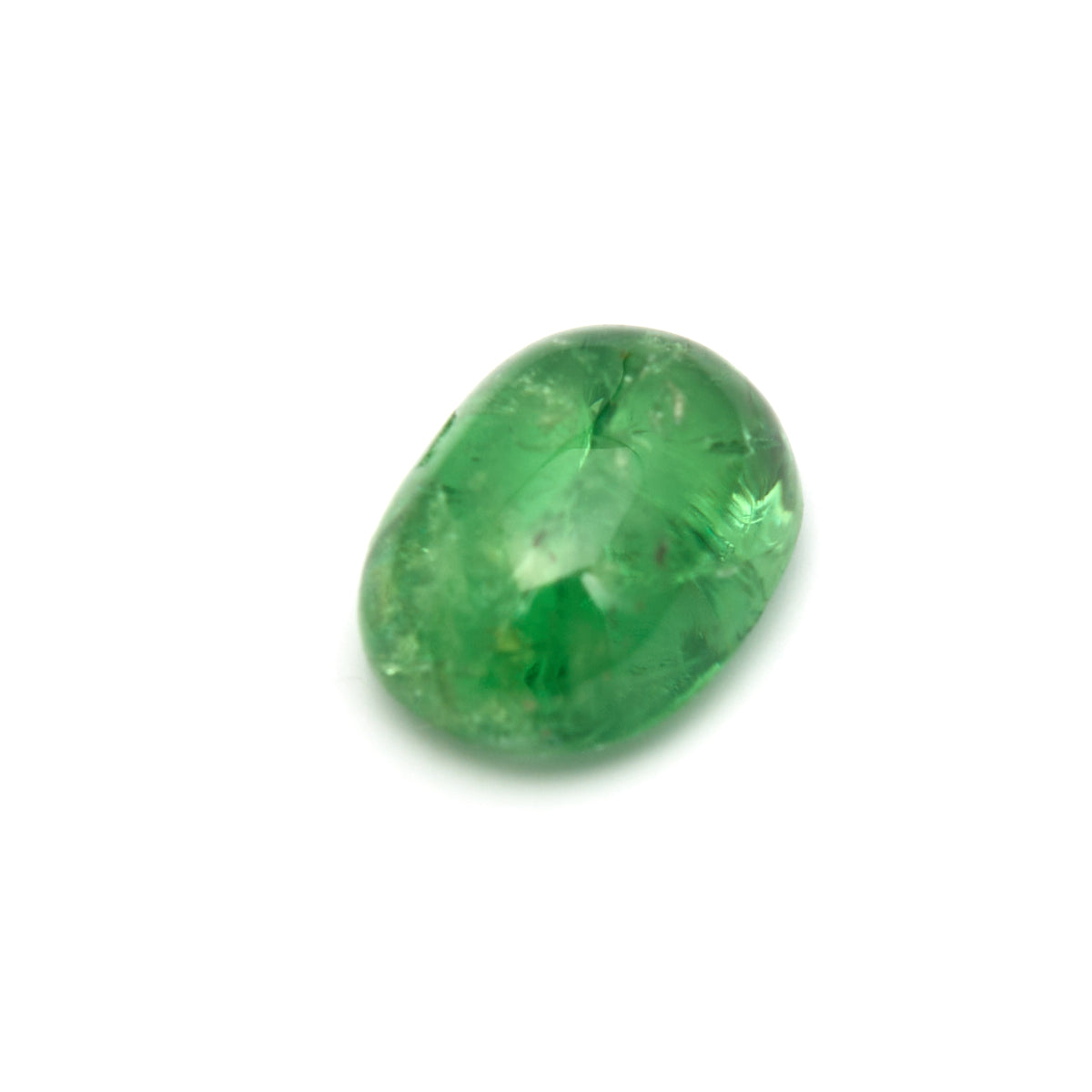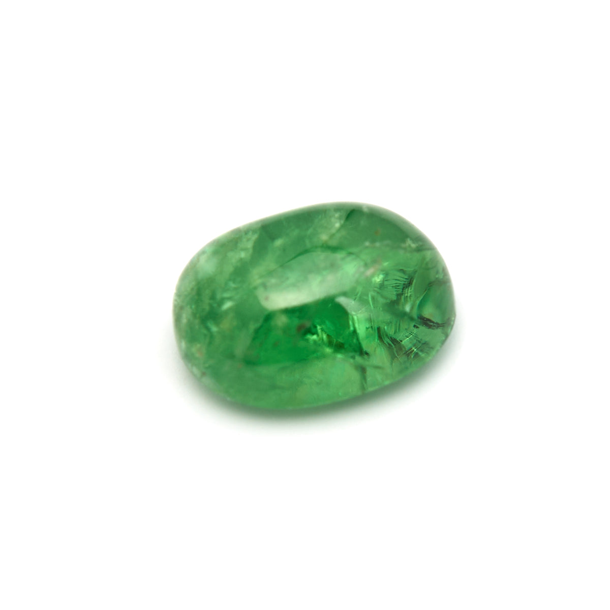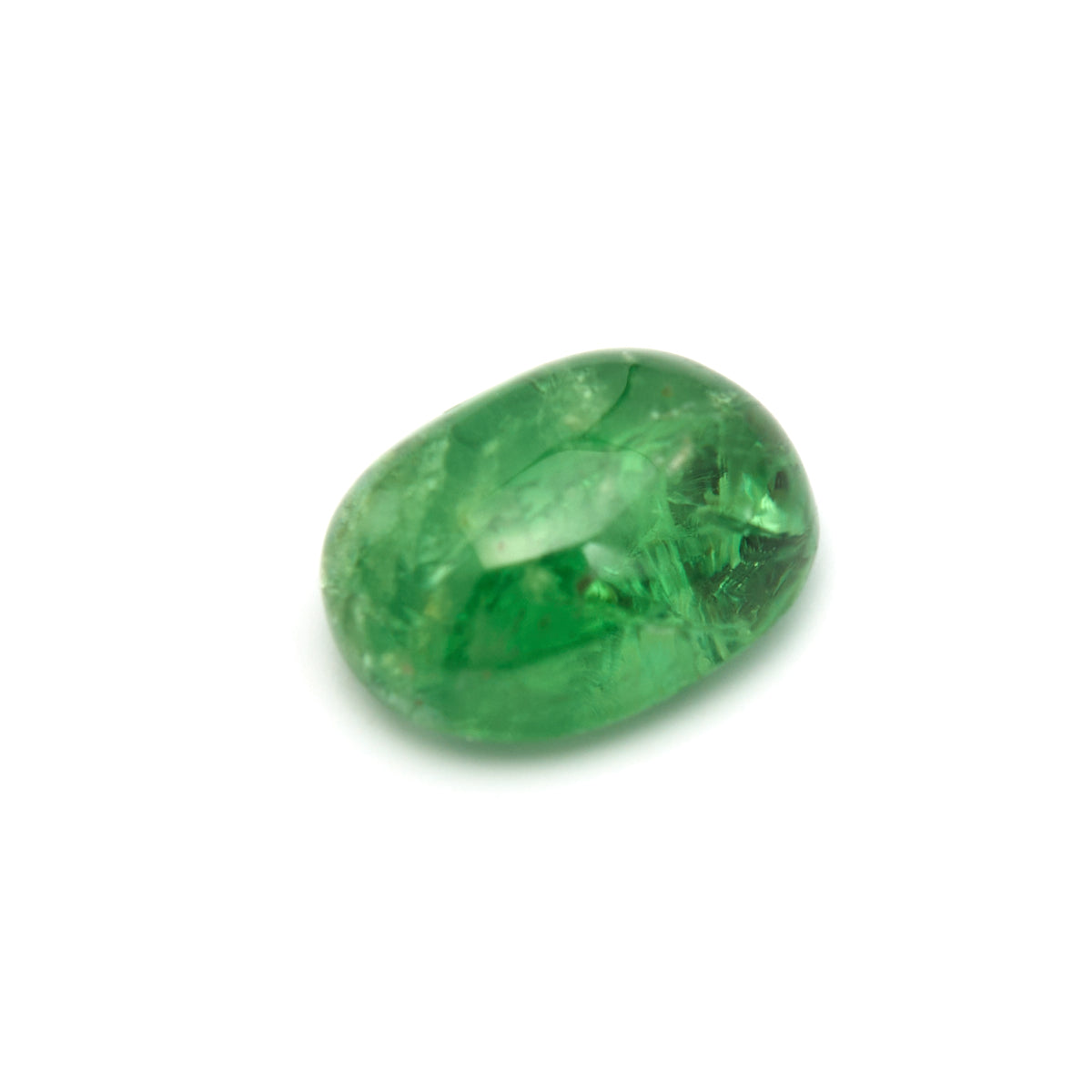 A lush, velvety green cabochon with an organic, earthy allure. This 1.61 carat Tanzanian tsavorite features a oval dome, radiating a soft inner glow under light. Its natural inclusions tell the story of its formation deep within the earth, adding character and authenticity to the gem. An ideal choice for bespoke creations that celebrate individuality and natureโs imperfect beauty.