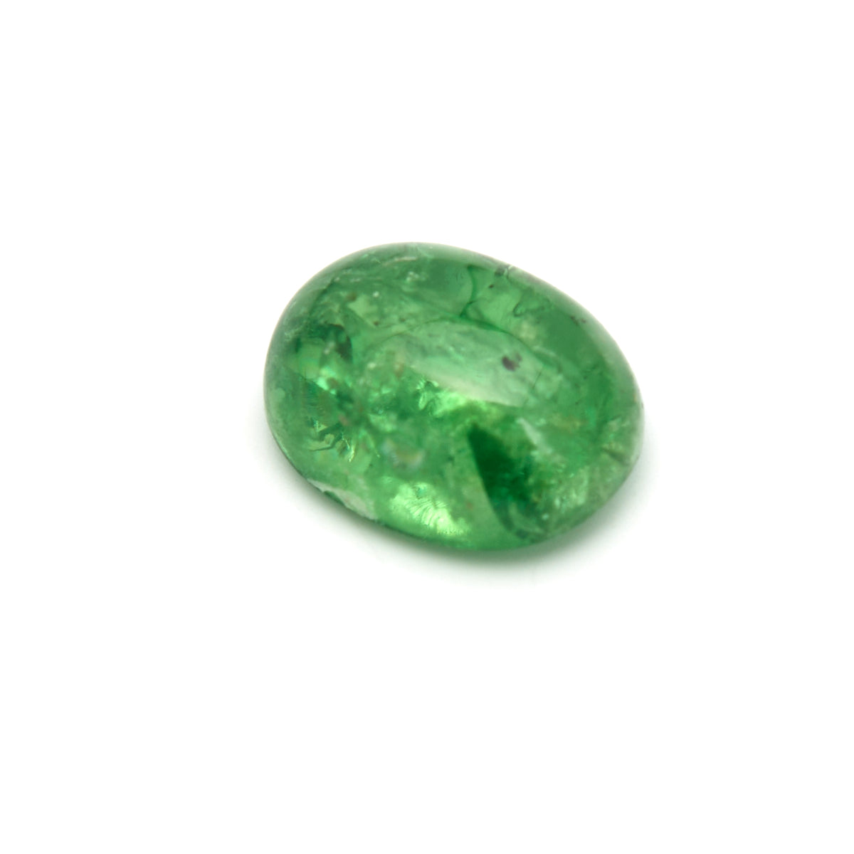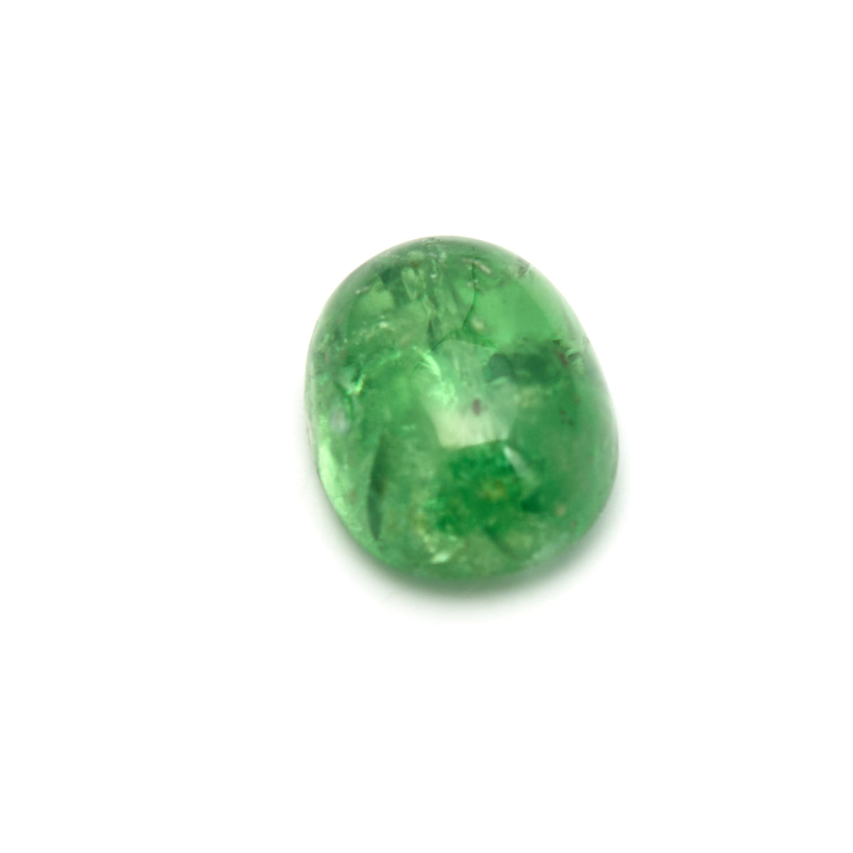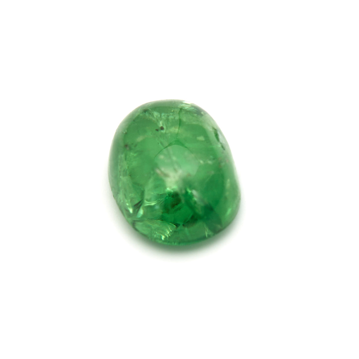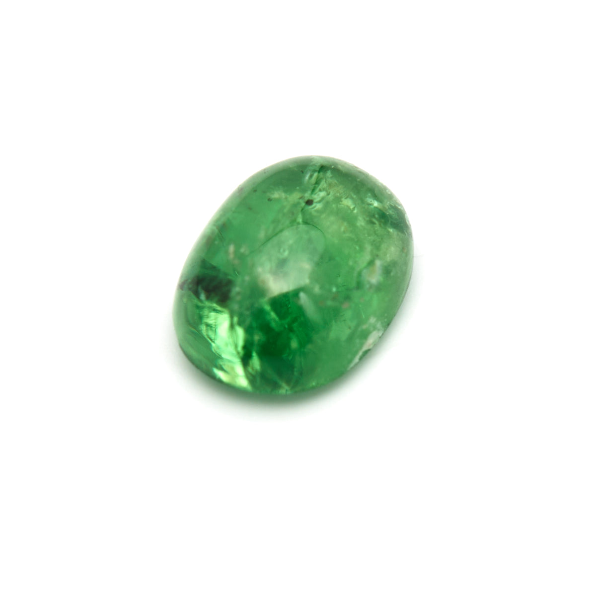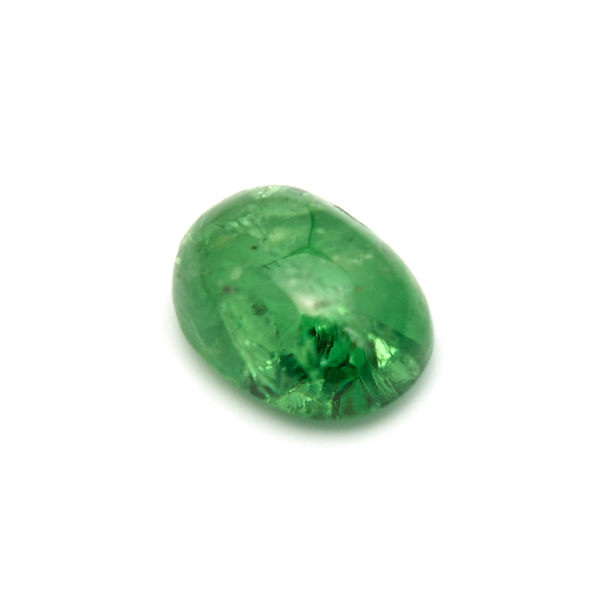 A lush, velvety green cabochon with an organic, earthy allure. This 1.61 carat Tanzanian tsavorite features a oval dome, radiating a soft inner glow under light. Its natural inclusions tell the story of its formation deep within the earth, adding character and authenticity to the gem. An ideal choice for bespoke creations that celebrate individuality and natureโs imperfect beauty.