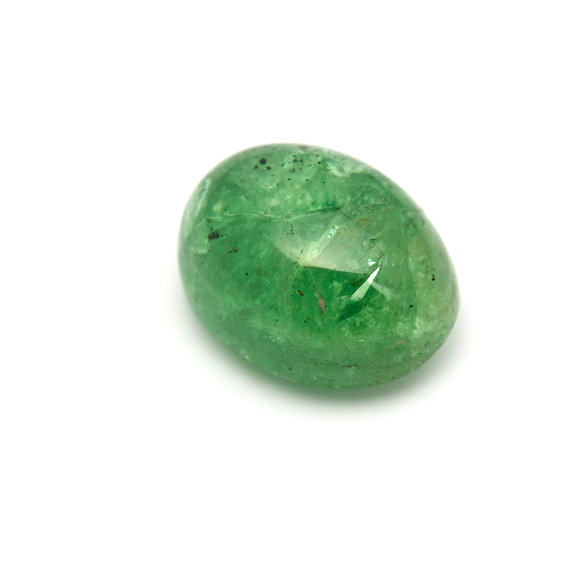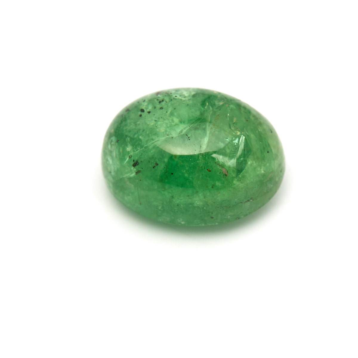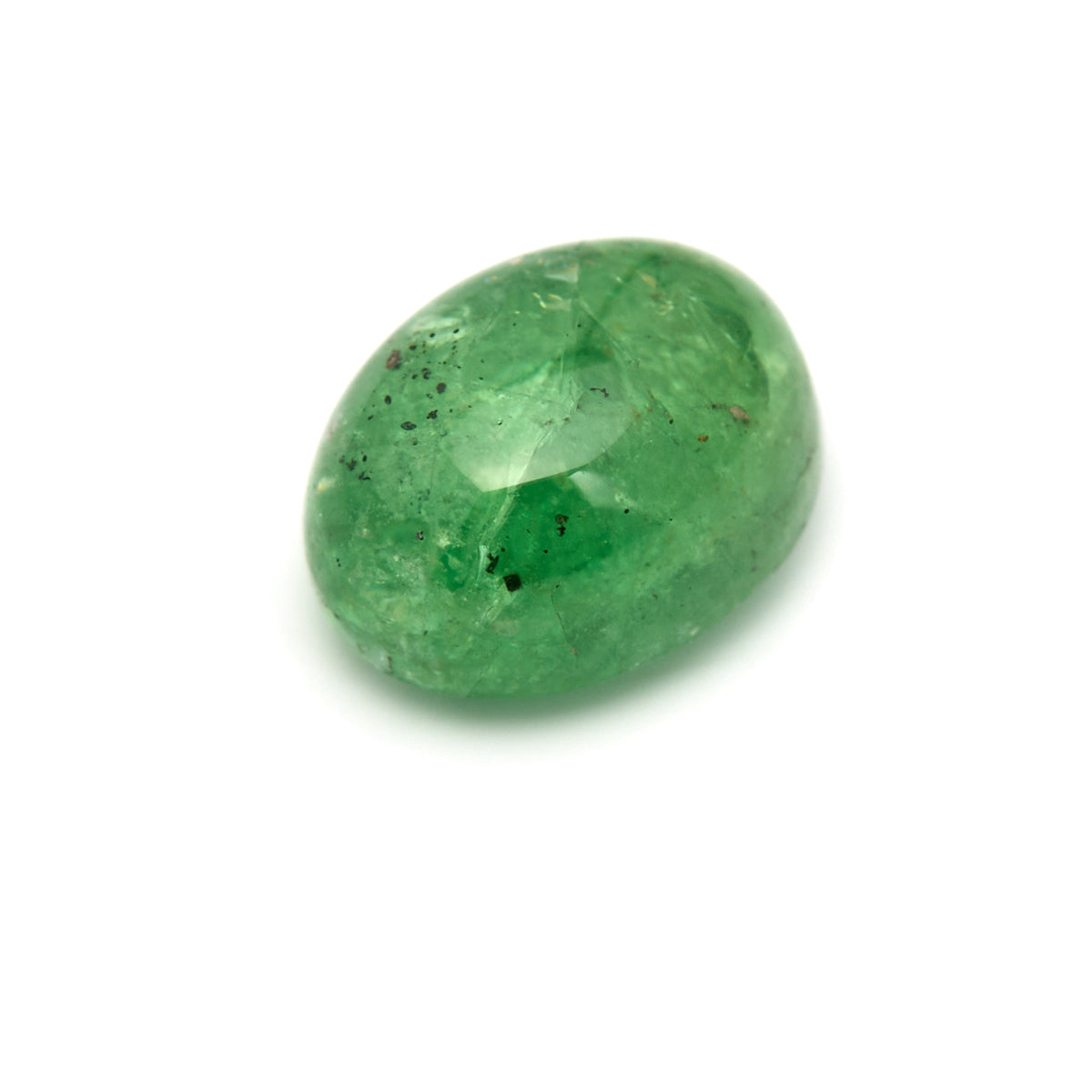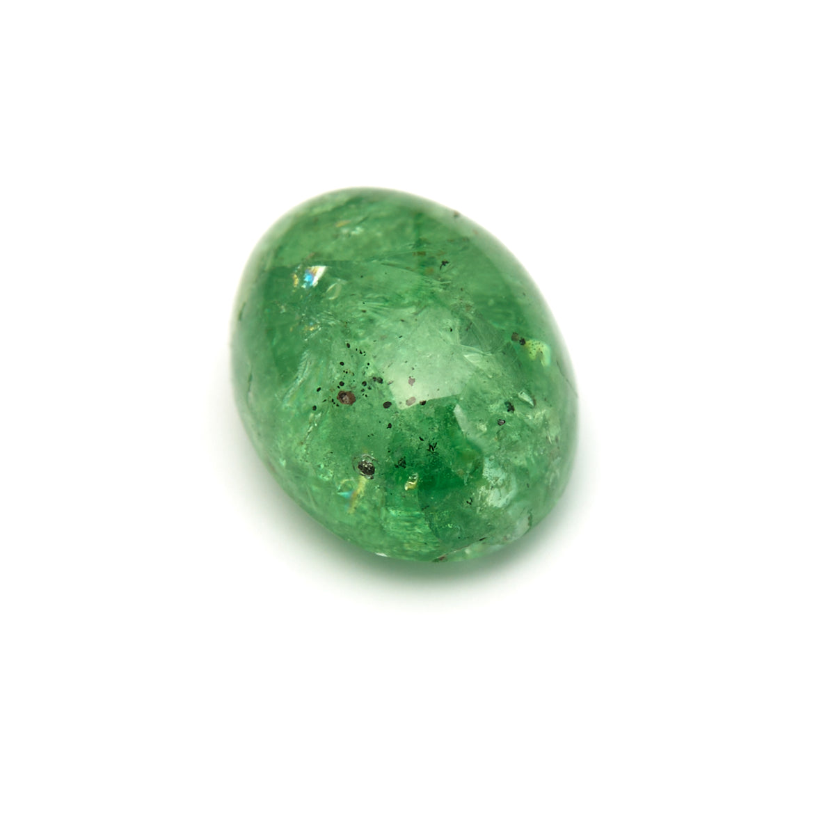 This 2.41 carat tsavorite from Tanzania displays a lush, vivid green with natural character and charm. The cabochon cut emphasizes its fluid translucence and organic inclusions, giving it a truly earthy elegance. Dark mineral accents add depth, while the rounded form invites light to play gently across its surface. Ideal for collectors or designers seeking a gem that celebrates nature's artistry, this tsavorite offers raw beauty in an unenhanced, naturally alluring form.