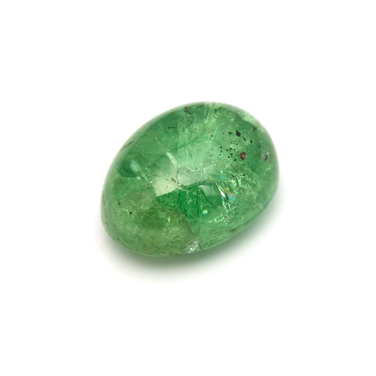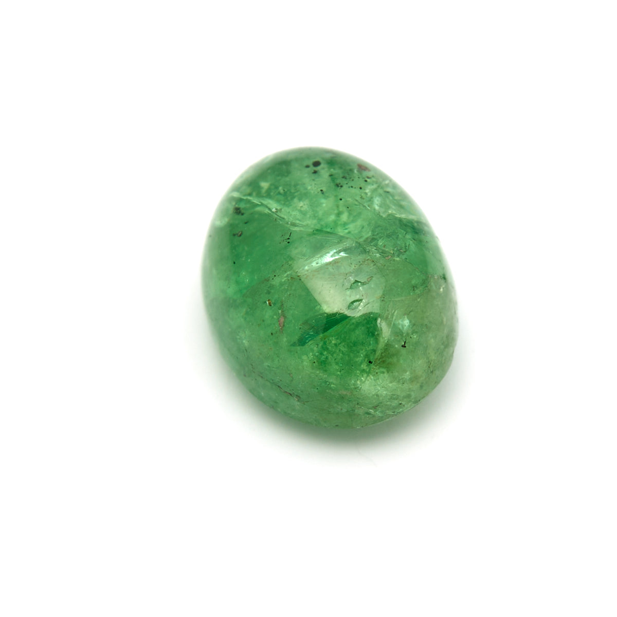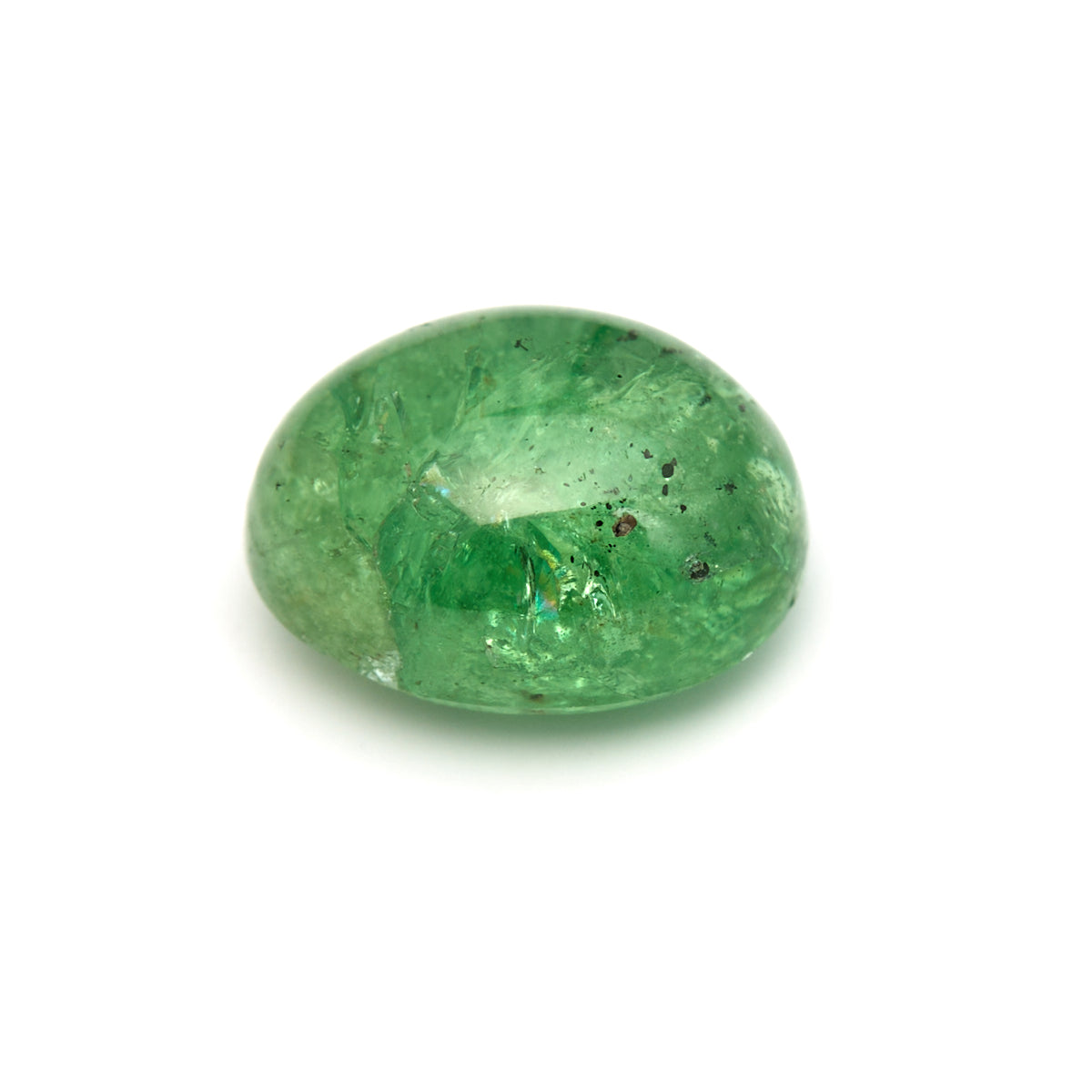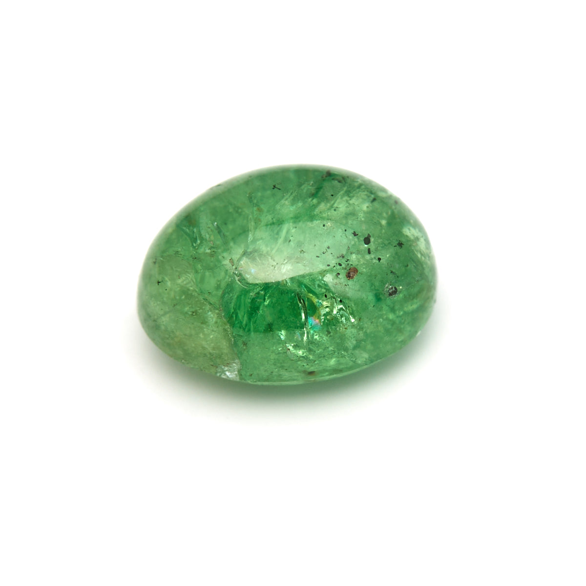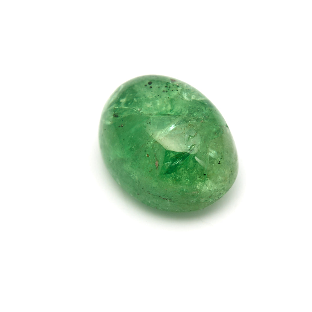 This 2.41 carat tsavorite from Tanzania displays a lush, vivid green with natural character and charm. The cabochon cut emphasizes its fluid translucence and organic inclusions, giving it a truly earthy elegance. Dark mineral accents add depth, while the rounded form invites light to play gently across its surface. Ideal for collectors or designers seeking a gem that celebrates nature's artistry, this tsavorite offers raw beauty in an unenhanced, naturally alluring form.
