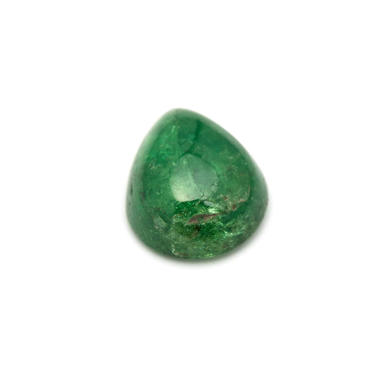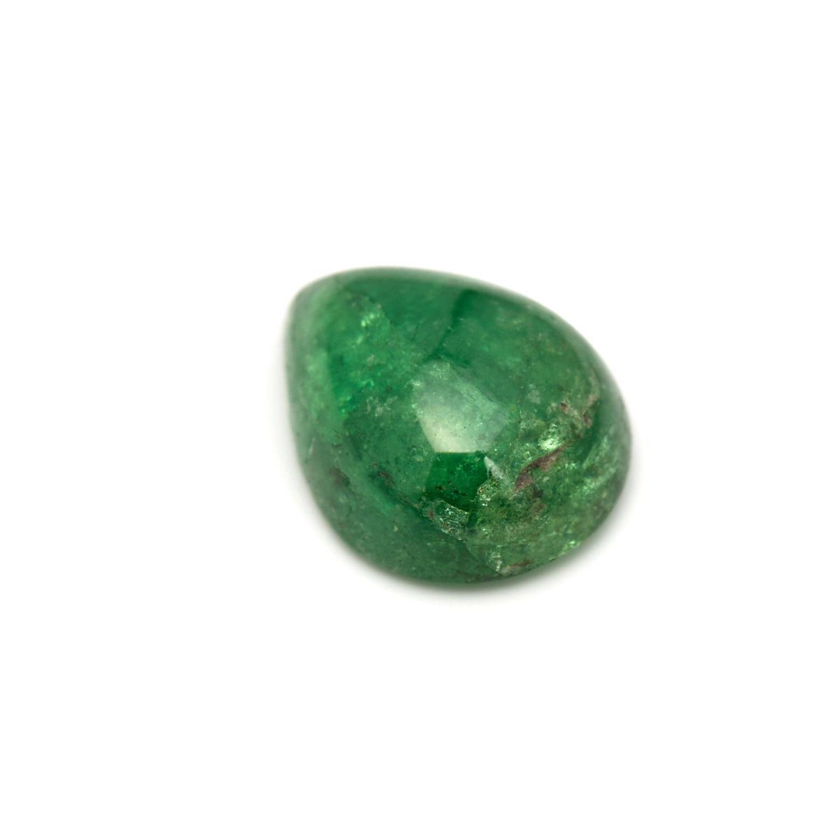 This uniquely shaped 1.40 carat tsavorite displays a rich forest-green hue in an elegant pear cabochon. Sourced from Tanzania, its deeper tone and organic internal landscape lend it an earthy charm. The teardrop silhouette makes it ideal for a one-of-a-kind pendant or ring that celebrates nature’s raw beauty.